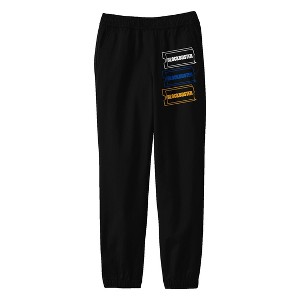- CUSTOM DESIGN: Elevate your loungewear game with these junior's black sweatpants featuring a unique design adorned with a variety of colorful Blockbuster logos, a nod to the iconic video rental era.