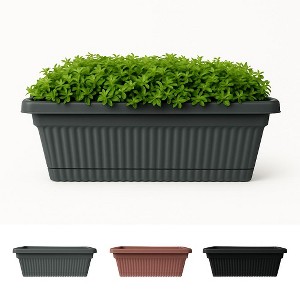 Amelia Window Box Planter by Bloem: Add a touch of style to your garden with the Amelia Window Box Planter. Its beautiful fluted design is perfect for showing off your herbs, succulents, or flowers. Made from lightweight, UV-resistant, and fade-resistant resin, it's easy to move around and built to last. Plus, the attached drainage tray keeps your plants happy and your surfaces safe from water damage. Grab the Amelia Planter and give your green space a fresh look!