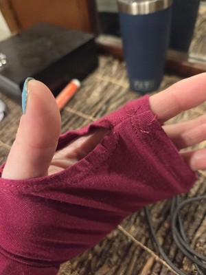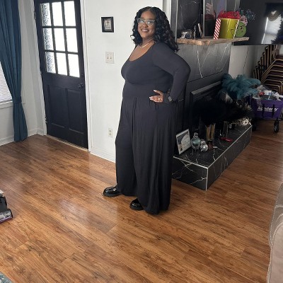 I love this jumpsuit! The material is very soft and comfortable. The cut is flattering and I got many compliments when I wore it to a Christmas party. My only complaint it the thumb holes and subsequently the length of the sleeves. I don’t care for thumb holes and think it looks silly in a garment like this. But if you don’t use the thumb holes then the sleeve length is too long. But overall, this is a very nice jumpsuit and I bought it in other colors I love it so much.