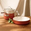 aller-size cookware sets open up your kitchen to a well-curated collection according to your culinary style and space. The bloomhouse™ 3-piece Matte Enameled Aluminum Cookware Set is a compact cooking starter kit that's small in size but big in design and function. It lends a sense of abundance and beauty to any kitchen with full, round-shaped cookware - drawing inspiration from the striking curvature of Colombian sculptures. Crafted from high-quality, heavy-gauge aluminum, this pot efficiently distributes heat to serve up delicious meals and seasonal flavors without cool spots and uneven results. The ceramic nonstick interior is made without PTFE, PFOA, PFAS, lead or cadmium to ensure safer and health-conscious cooking. Designed with Supreme Fusion Technology for long-lasting durability and everyday use, this non-toxic ceramic nonstick surface is 10x stronger than the standard coating typically found in ceramic nonstick cookware. Extended cast handles provide a safe and comfortable grip when lifting, transferring and serving. For healthier cooking styles, use the Cook-to-Serve ceramic steamer insert to prepare your favorite flavors in a manner you feel good about.