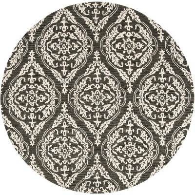 Adorned with an intricate pattern blending grey and ivory hues, this rug exudes a timeless sophistication that seamlessly integrates with diverse interior decors. The round shape offers a refreshing alternative to standard rectangular rugs and can act as a stunning focal point or as a complementary addition to round or curved furniture.