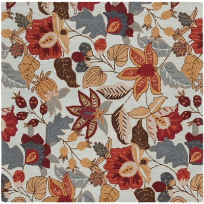 The floral pattern dances across the rug, featuring a delightful mix of blossoms and foliage that create an enchanting garden-inspired motif. Its square shape is perfect for complementing a variety of room settings, providing balance and symmetry.