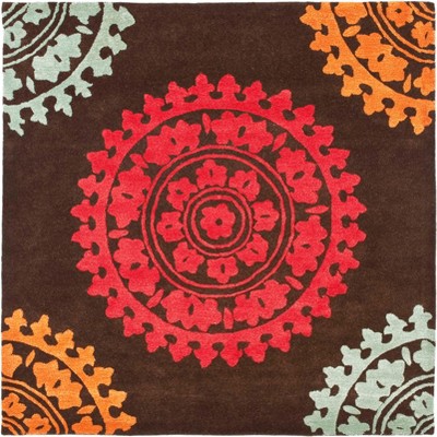Blossom BLM695 Hand Hooked Indoor Area Rug - Grey/Orange - 6'x6' - Safavieh