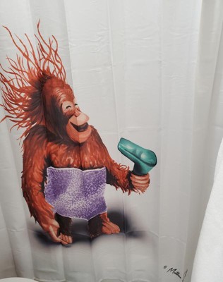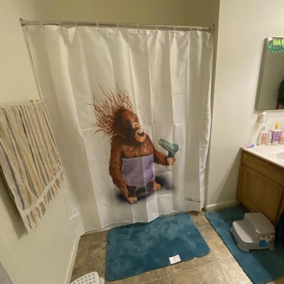 Allure Home Creations Blow Dryer Monkey Shower Curtain: Polyester Fabric, Machine Washable, 72x70 inches