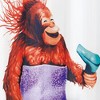 - • Oversized printed novelty character design of a monkey blow drying it's hair