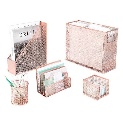 - 5 Piece Set: mail sorter, sticky note holder, pen cup, magazine file holder, and hanging file organizer