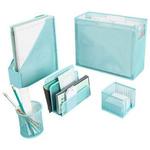 Product Name: Blu Monaco Fontvieille 5 Piece Aqua Desk Organizer Set with Desktop Hanging File Organizer