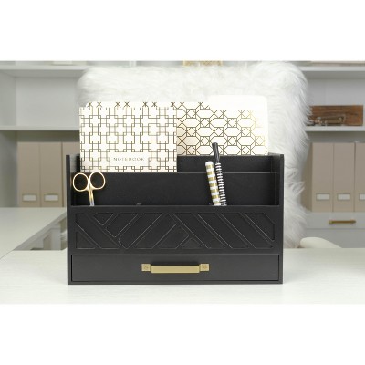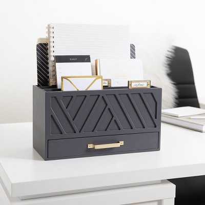 Product Name: Blu Monaco Black Mail Organizer with Drawer and Gold Handle - Desktop Mail Holder and Office Supplies Storage