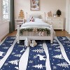 Blue 9x12 Rugs Washable for Christmas Home Decor Indoor Non Slip Carpet Soft Low Pile with Xmas Tree Reindeer Snowflake for Living Room
