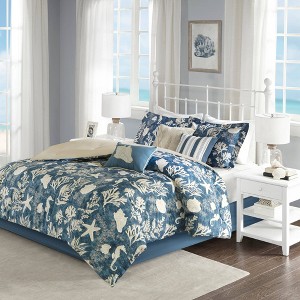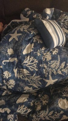 A: Hi Janice, this 7-piece comforter set includes a beautifully designed comforter, two matching shams, three embroidered decorative pillows, and a bed skirt with a 15” drop. Made from soft cotton sateen with charming coastal motifs, this set adds an elegant touch to your bedroom while ensuring comfort.