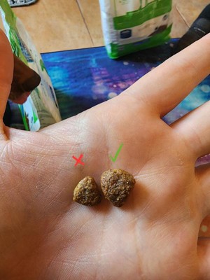 I noticed the size of the kibble went a bit smaller than the average size. My dog is a picky eater and even he noticed it lol dont ask me how but he knows! Lol. Go back to the normal size of the kibble please.
