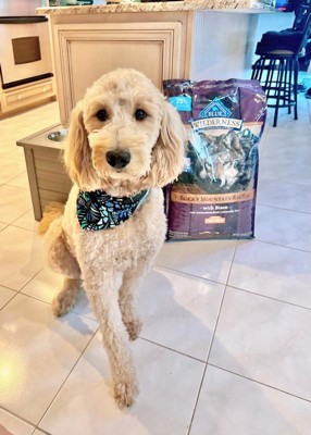 [This review was collected as part of a promotion.] Mia and I are thrilled to dish out the inside scoop on a dog food that made our furbaby pawsitively excited - the Blue Wilderness Large Breed Adult Dog Bison. If you’re on the hunt for a meal that combines the untamed essence of the wild with top-notch nutrition, then this one’s for ya First Impressions, Mia immediately sniffed the package when it arrived in our home, almost as if she knew it was for her even though it’s properly sealed. Upon opening the bag, you can immediately smell the meaty aroma so we understand why she’s very interested. Now let’s talk about nutrition. Mia is a 4 year old, 50 lb golden doodle at the time of this writing. Blue Wilderness knows the importance of fueling our larger furry friends with the right nutrients. Packed with lean protein from real bison, this recipe is formulated to support the needs of large breed adult dogs, with an ideal balance of protein, fats, and carbohydrates to keep them bounding with energy. No artificial flavors or preservatives here! Blue Wilderness prides itself on using only the best natural ingredients to provide a well-rounded meal that promotes overall health Now, let’s get down to the most crucial part - the taste test! You won’t need to coax your pooch to dive into their bowl; the irresistible bison aroma will have them doing zoomies before mealtime. As my own furry friend eagerly devoured her meal, you can see that little tongue licking every last bit. The kibble size is just right for larger breeds, and the crunchy texture helps maintain our pup’s dental health. Overall, Mia approves so we approve 🐶