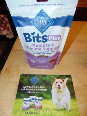 - INCLUDED IN PACKAGE: Contains one (1) 9.5-oz. Bag of BLUE Bits Plus Mobility and Immune Support Soft and Chewy Dog Treats, Beef