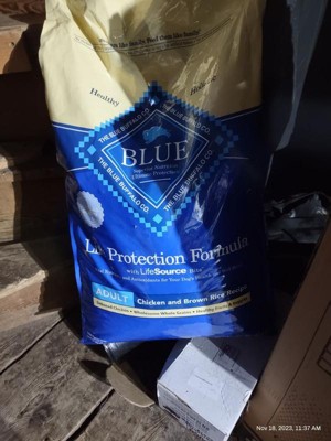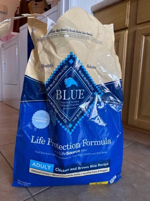 REAL MEAT FIRST: Blue Buffalo foods always feature real meat as the first ingredient; High-quality protein from real chicken helps your dog build and maintain healthy muscles; Plus they contain wholesome whole grains, garden veggies and fruit WEIGHT MANAGEMENT DOG FOOD: Formulated with reduced calories from fat to help large breed dogs achieve and maintain healthy weight, this dog food also contains glucosamine and chondroitin to help support joint health and mobility ANTIOXIDANT-RICH LIFESOURCE BITS: A precise blend of antioxidants, vitamins and minerals carefully selected by holistic veterinarians and animal nutritionists to support immune system health, life stage needs and a healthy oxidative balance A NATURAL DOG FOOD: BLUE dry dog foods are made with the finest natural ingredients enhanced with vitamins and minerals; BLUE contains NO chicken (or poultry) by-product meals, corn, wheat, soy, artificial flavors or preservatives Contains one (1) 30 lb. Bag of BLUE Life Protection Formula Healthy Weight Large Breed Adult Dry Dog Food, Chicken and Brown Rice