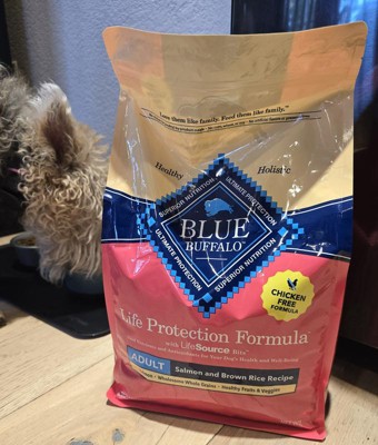 Formulated for the health and well-being of adult dogs, BLUE Life Protection Formula Salmon and Brown Rice dry dog food is made with the finest natural ingredients enhanced with vitamins, minerals, and other nutrients. It’s a high-quality, balanced recipe you can both feel great about. Designed to help your dog thrive, this formula starts with real salmon, is chicken-free, and contains no chicken (or poultry) by-product meals, no corn, wheat, or soy, and no artificial flavors or preservatives. Like all BLUE dry foods, BLUE Life Protection Formula includes exclusive, antioxidant-rich LifeSource Bits to support a healthy immune system in your adult dog. Give your dog the balanced nutrition of BLUE Life Protection Formula today. BLUE Life Protection Formula is brought to you by Blue Buffalo, the leader in natural pet food. Blue Buffalo makes premium-quality pet foods featuring real meat, fruit, and vegetables. Love them like family. Feed them like family.