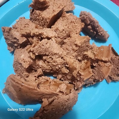 I bought this for the first time 3 weeks ago bought a case of it. Man was that a bad move on my part. I have 24 cans left and they won't touch it. It's extremely dry. Zero gravy, and it's so thick I literally have to chop it with a fork to brak it into bite size pieces. My cats begrudgingly ate a few bites and most of it goes bad. My cats are not picky, this can not be what the company thinks is quality food. Especially for the price! I've read they're was a recipe Charme a few years ago. I honestly thought I'd gotten a bad batch. I will not be buying this brand of wet food again. I was trying to find better healthier food for my fur babies. This was a huge swing and a miss!! You should be ashamed of yourself Blue Buffalo for having this poor quality and the price tag attached to it. Booooo two thumbs down!