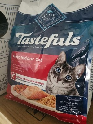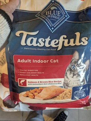 [This review was collected as part of a promotion.] This blue buffalo tastefuls adult cat food is such good stuff . It is made with salmon and brown rice. My cats really enjoy it. It is a healthy option. We will definitely be purchasing this product again. It is a little more costly then some indoor cost food but definitely worth it!