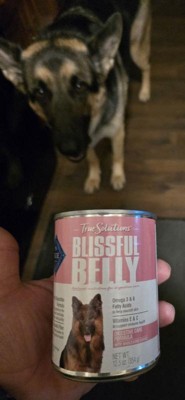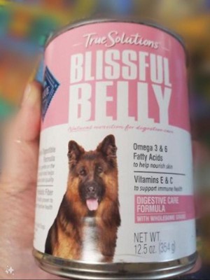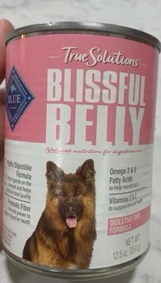 [This review was collected as part of a promotion.] Our picky chihuahua really loves Blue Buffalo. She had no trouble transitioning to the True Solutions Blissful Belly Wet Food. She did a little happy dance when I opened the can. She must have approved of the smell! She did not have any negative reaction to the food so it is on our list of approved options! I would recommend Blue Buffalo.