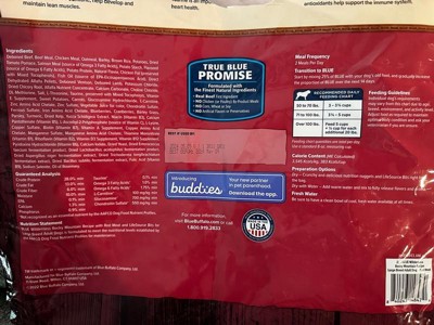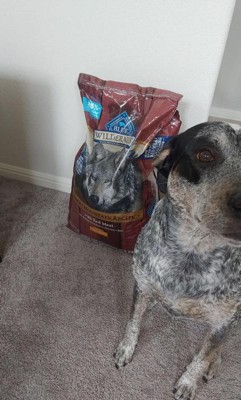 [This review was collected as part of a promotion.] I have 3 dogs with different weights (and tastes). I added this food to my dogs regular food and they seemed to like it. It has a lot of protein which is good. I have some concerns about using Blue because of the lawsuits against them in recent years. I don’t think I would purchase this myself. (Sorry about the photos. We had already cut the top of the bag off because that’s how we fit the larger bags into the container we use for their food.)