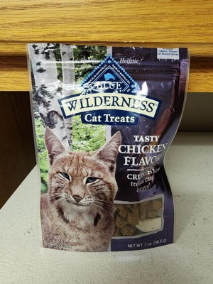 - Contains one (1) 2-oz. Bag of BLUE Wilderness Grain Free Crunchy Cat Treats Chicken