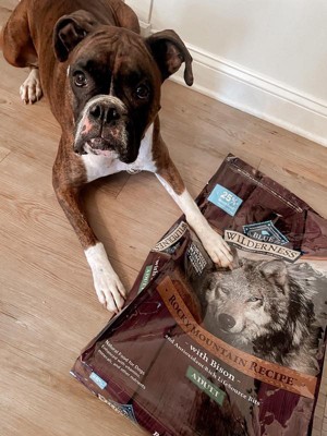 Feed your dog's wild side with BLUE Wilderness Rocky Mountain Recipe Adult Dry Dog Food. The first ingredient in this HIGH-PROTEIN DOG FOOD is deboned bison. It's also made with savory beef meal and fish meal to help build and maintain strong muscles. This adult dog food with real meat is packed with healthy, complex carbohydrates, plus nutritious fruits and vegetables. BLUE Wilderness natural dog food is formulated without any chicken (or poultry) by-product meals. It is also free of corn, wheat, soy, artificial flavors, and preservatives. You can feel great knowing Blue Buffalo is helping your dog thrive with a protein-packed diet.