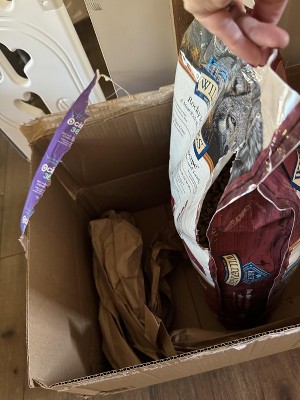 We truly apologize for the issue with the packaging of your Blue Buffalo Wilderness Rocky Mountain Recipe High Protein Natural Adult Dry Dog Food. While we strive for excellence, damage can sometimes occur during the shipping and handling process. To exchange your product, please visit the retailer where you purchased it. Remember to bring your receipt and complete the exchange within their return window.