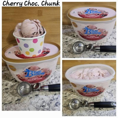 This ice cream is so delicious with the amaretto cherries in it and chocolate flakes. It's packaged in a hard plastic container that's resealable for freshness I could eat the whole container in one sitting delicious. And Blue Bunny ice cream is so smooth.