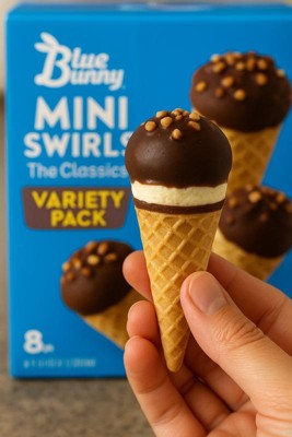- One 8 pack of Blue Bunny Mini Swirls Classic Mini Cones
