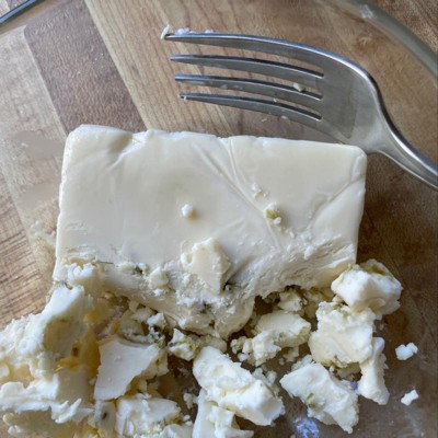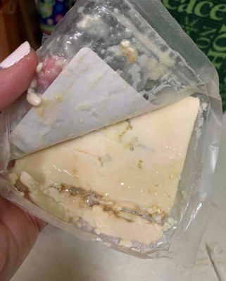 When I opened it, there was quite a bit of liquid which is odd for blue cheese. Then there were also brown flecks in it which is also odd for blue cheese. I just threw it out. Didn’t want to chance getting sick. Stick with their blue cheese crumbles instead.