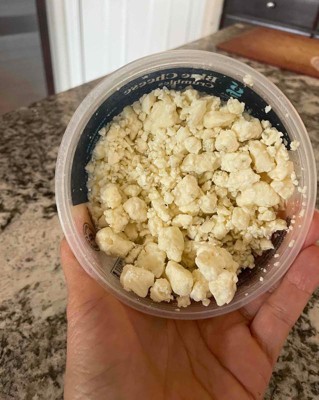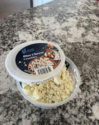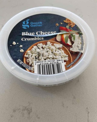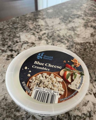 Add a funky, cheesy twist to a variety of meals with these Blue Cheese Crumbles from Good & Gather™. The crumbled form of this blue cheese makes it quick and easy to sprinkle on top salads, incorporate into omelets or even add to sandwiches. The tangy flavor makes a classic pairing with choices like Buffalo chicken and more. And if you're looking for a quick snack on a busy day, you can also enjoy a handful right out of the 4-ounce container.