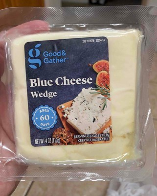 [This review was collected as part of a promotion.] I purchased this Good and Gather 4 ounce blue cheese, wedge. This blue cheese wedge is aged for 60 days, giving it the perfect flavor to add to a variety of products, such as salads, sandwiches, crackers, eggs, and much much more. This blue cheese has a salty flavoring. I received an incentive to write this review.