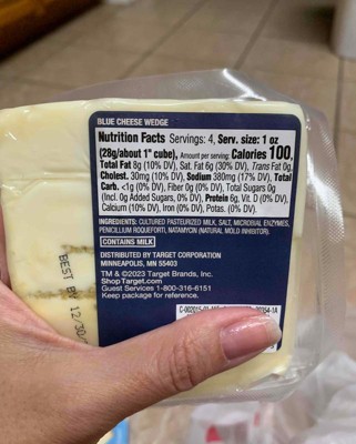 [This review was collected as part of a promotion.] I purchased this blue cheese wedge in a 4 ounce package by Good and Gather. This cheese can either be sliced, or even crumbled if you would like to put it on top of a salad. It's so nice to add a salty flavor to your salad or crackers. it can make an ordinary dish extraordinary. I received an incentive to write this review.