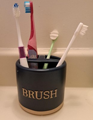 The kids loved adding their favorite toothbrush in this stylishly, divided into 3 spacious sections, blue rounded ceramic, toothbrush holder. I found it was durable, yet sturdy. It held their toothpaste and 2 toothbrushes.
