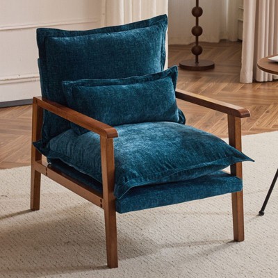 Blue Modern Accent Chair, Armless Lounge Chair with Tufted Upholstery & Wood Legs, Fabric Side Chair for Living Room, Bedroom, Makeup Vanity, Patio