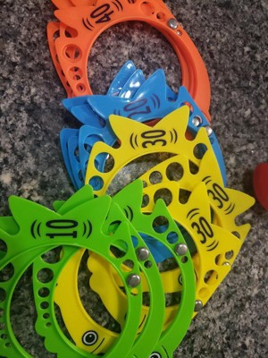 [This review was collected as part of a promotion.] I received these on purpose to try and they are awesome. Just a light weight plastic material with a weight so they sink in water. But they are cute. Colorful and perfect for the pool. We love to spread them out and dive to see who can collect the most/get the lost points as they all have points on them 10,20,30 and 40. I would definitely buy another set of these.