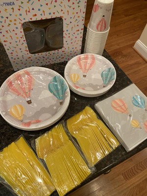 Sparkle and Bash 168-Piece Hot Air Balloon Party Decorations for Baby Shower, Birthday Party, Paper Plates, Plastic Cutlery, Cups, and Napkins, Serves