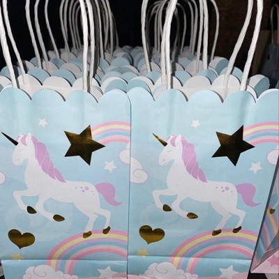 Blue Panda 24 Pack Small Unicorn Favor Bags with Handles, Pastel Rainbow Birthday Party Decorations, 5.5 x 8.6 x 3 In