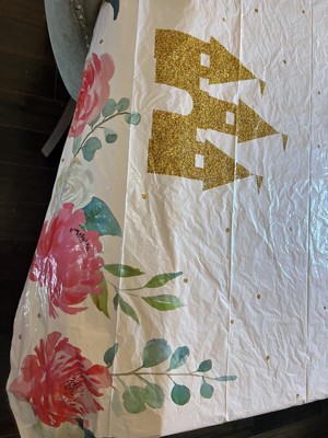 • PRINCESS PARTY SUPPLIES: Includes 3 plastic table covers; ideal for your princess birthday party! Features pastel pink flowers with gold glitter accents