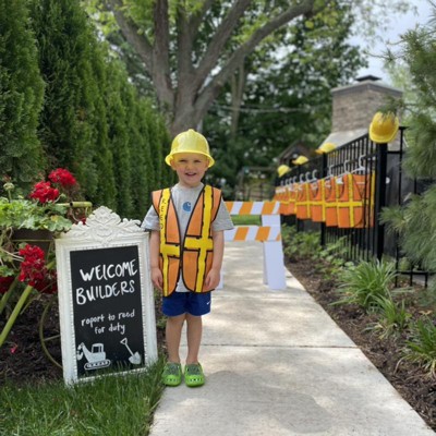 Blue Panda 6 Set Construction Worker Costumes for Kids - Vests &Hats for Construction Theme Birthday Dress-Up Party, For Ages 3-14