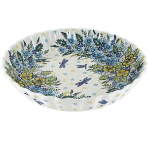Bake your favorite recipes in style with this beautifully handcrafted pie plate, thoughtfully designed for both performance and presentation. Measuring 10" in diameter and 1.75" deep, itÂ’s the perfect size for fruit pies, custards, quiches, and more. Crafted from high-fired stoneware, it delivers excellent durability and is celebrated for its even heating, ensuring perfectly baked crusts and fillings every time. Each piece is double glazed for a naturally non-stick finish, making serving and cleanup a breeze. A delicate scalloped edge adds charm and elegance, while the vibrant, hand-painted design makes every plate a one-of-a-kind treasure that transitions seamlessly from oven to table. Handmade in Poland by skilled artisans, this pie plate is as durable as it is beautiful, safe for the oven, microwave, dishwasher, and freezer. Whether youÂ’re preparing a classic family recipe or showcasing a seasonal creation, this heirloom-quality piece blends artistry, tradition, and practicality for baking youÂ’ll enjoy for years to come.