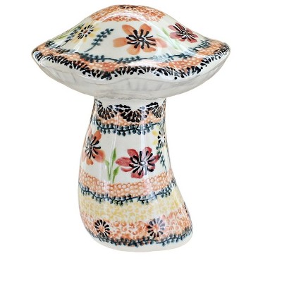 Bring playful charm to your garden or home with this hand-decorated medium pottery mushroom. Handmade and hand-painted by skilled artisans, each mushroom features vibrant colors and intricate patterns that reflect the beauty and tradition of Polish pottery. High-fired and double glazed, it is crafted for durability, making it suitable for outdoor display among garden beds or potted plants, as well as indoors on a shelf, windowsill, or tabletop. Measuring 4.5 inches wide and 5 inches high, the medium mushroom is perfectly sized to stand alone as a decorative accent or to be paired with other mushrooms to create a whimsical grouping. Its detailed design and cheerful presence make it a delightful way to add character to any space. Both functional and decorative, this piece is built to brighten your surroundings for years to come. A thoughtful gift for gardeners, collectors, or anyone who loves unique handmade décor, the medium mushroom adds a touch of artistry and joy wherever it’s placed.
