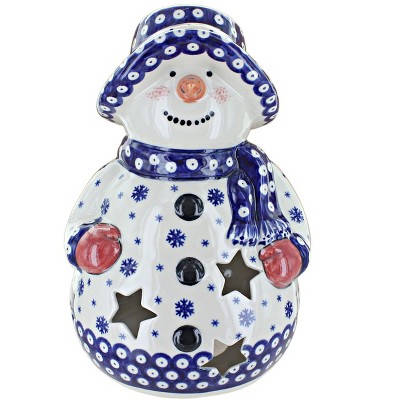 Blue Rose Polish Pottery 643 Vena Snowman Luminary