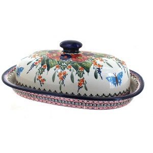 This covered bread dish is both functional and beautiful, making it an essential piece for any kitchen. Measuring 15 inches long, 10 inches wide, and 5 inches high, it’s perfectly sized for storing fresh bread, rolls, or your favorite baked goods. The covered design helps keep contents fresh while also adding a decorative touch to your countertop or table. Handmade and hand-painted in Poland, each piece showcases vibrant patterns and detailed artistry that highlight centuries of ceramic tradition, ensuring that no two are exactly alike. Its substantial size makes it versatile—not only for bread, but also for pastries, cookies, or even serving dishes at gatherings. Crafted from high-fired stoneware, this bread dish is durable, chip-resistant, and designed for long-lasting use. Double-glazed for added strength and effortless cleaning, it’s also safe for the oven, microwave, dishwasher, and freezer, offering both practicality and convenience. Whether displayed proudly as a decorative centerpiece or used daily to keep baked goods fresh, this covered bread dish is a timeless piece that brings beauty and function to your kitchen.