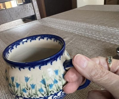 Love the Polish Pottery mugs! Staying close to home during the pandemic has resulted in many mornings reading the paper and sipping coffee or tea. This mug brings a smile to my face and has caused an obsession! I find I like the 15/16 oz size but also the 11/12 oz size. So many choices! Dishwasher and microwave safe. Target carries a great variety. I’m adding them to my new mug tree!
