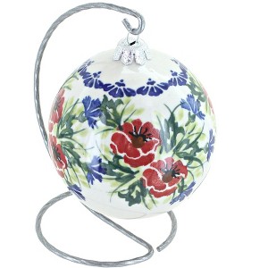 Celebrate the holidays with Polish pottery and add a truly unique touch to your seasonal décor with our hand-painted ball ornament and stand. The ornament measures 4 inches wide and is beautifully displayed on a 6-inch-high stand, making it perfect for showcasing on mantles, side tables, or festive centerpieces. Handcrafted and hand-painted in Boles?awiec, Poland, each ornament features vibrant colors and traditional motifs that make Polish pottery so beloved, ensuring that every piece is one of a kind. This ornament is more than just a decoration—it’s a keepsake that can be enjoyed year after year, bringing artistry and tradition into your home. Its elegant stand makes it easy to display anywhere, whether you’re adding it to your own holiday collection or gifting it to someone special. A thoughtful present for friends, family, or hosts, this ornament and stand set is a timeless way to celebrate the season with heritage and style.