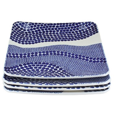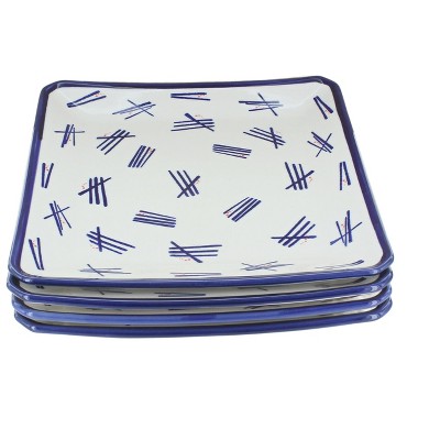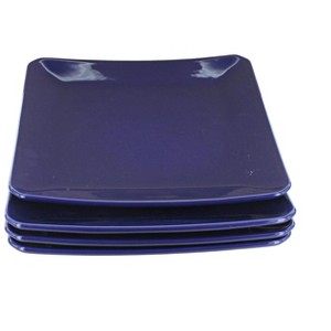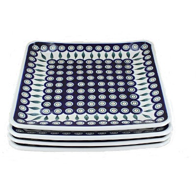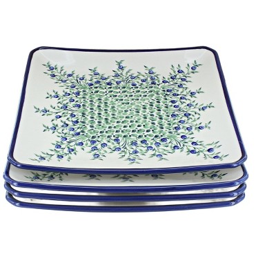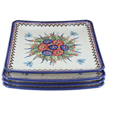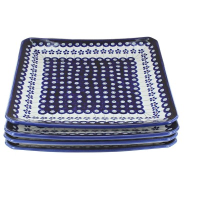 Blue Rose Polish Pottery 2041-4 Zaklady Sq Dinner Plate Set