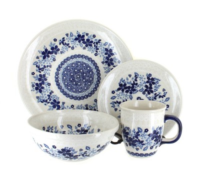 Blue Rose Polish Pottery Manufaktura Dinnerware 4PC
