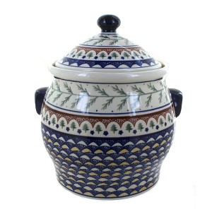 This generously sized cookie jar is the perfect blend of artistry, tradition, and everyday function. Standing 11.25 inches high with an impressive 21.25-cup capacity, it’s ideal for storing cookies, snacks, flour, or other pantry staples while adding a touch of charm to your kitchen counter. Each jar is handmade and hand-painted in Poland by skilled artisans, ensuring that no two are exactly alike. The detailed brushwork and bold, vibrant patterns celebrate centuries of ceramic tradition, making this piece just as decorative as it is practical. Crafted from durable, high-fired stoneware and finished with a smooth, double glaze, this cookie jar is chip-resistant, easy to clean, and designed to last for generations. The snug-fitting lid helps keep contents fresh, whether you’re storing baked treats for the family or keeping essentials close at hand. Safe for the dishwasher, microwave, oven, and freezer, it combines heirloom-quality craftsmanship with modern convenience. With its large capacity and eye-catching design, this cookie jar makes a beautiful centerpiece in your kitchen, a practical storage solution, and a collectible piece of functional art that’s sure to bring joy for years to come.