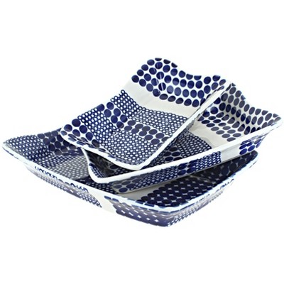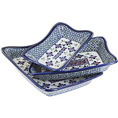 Blue Rose Polish Pottery 1930 Zaklady 3 Piece Serving Dish Set