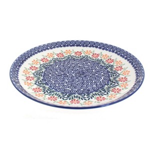 Generously sized for hearty portions or versatile enough to double as a small serving dish, this handcrafted Polish pottery dinner plate is a functional work of art for your table. Measuring 11.25 inches in diameter, it provides ample space for full meals, holiday feasts, or shared dishes, making it a true staple for both everyday dining and special occasions. Each plate is individually shaped and painted by hand in Poland, showcasing the artistry and tradition that make Polish pottery so admired. No two pieces are exactly alike, giving every plate its own unique character. High-fired for exceptional durability, the ceramic resists chipping and everyday wear while preserving its glossy finish and vivid colors for years of enjoyment. The smooth, double-glazed surface offers a scratch-resistant finish that cleans easily and keeps the intricate designs looking beautiful. Safe for the microwave, dishwasher, and freezer, this plate combines artisan craftsmanship with modern convenience. Whether used daily or displayed as part of your collection, this large dinner plate is both practical and elegant, making it a timeless addition to your table.